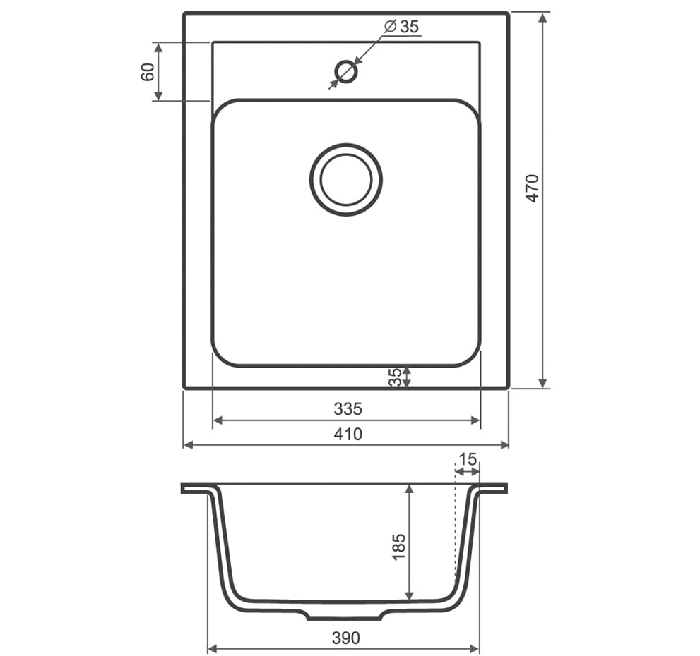 Montaż wpuszczany w blat. Zlew przeznaczony jest do montażu poprzez wpuszczenie w blat lub szafkę.