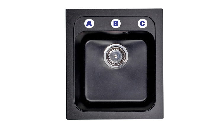 - zlewozmywak sprzedawany jest z otworem po środku, możliwość wykonania otworów A i C na życzenie - napisz w uwagach przy zakupie zlewozmywaka