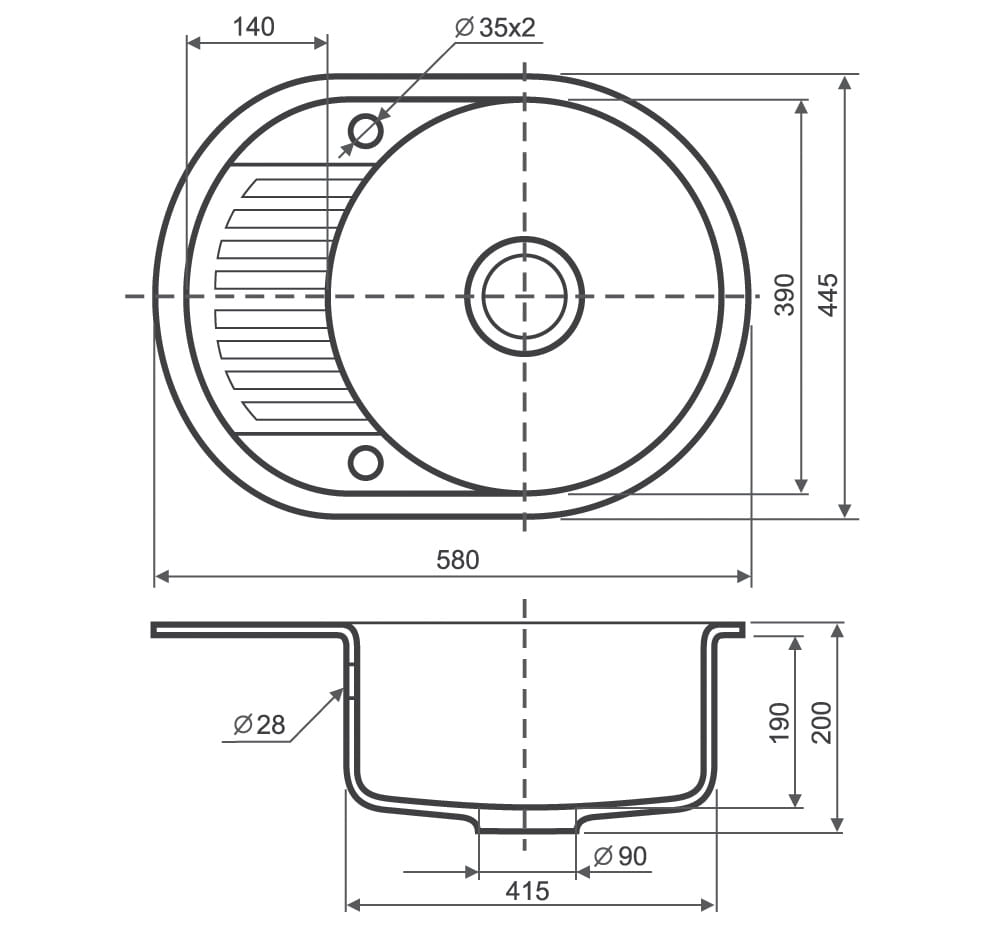 Montaż wpuszczany w blat. Zlew przeznaczony jest do montażu poprzez wpuszczenie w blat lub szafkę. Przy zakupie należy wybrać stronę zlewozmywaka - prawą lub lewą.