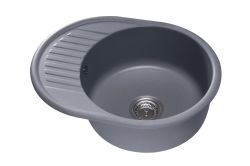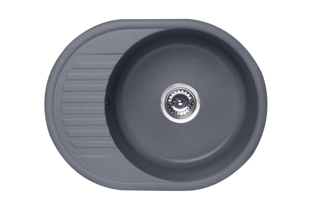 Zlewozmywak granitowy 1-komorowy owalny 58x45 cm z niewielkim ociekaczem Darfor DG012 grafit