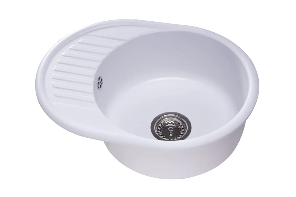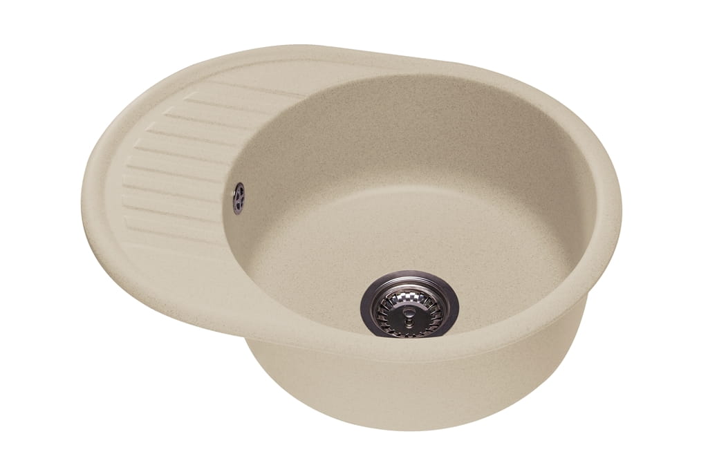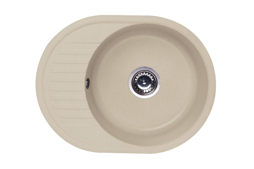 Zlewozmywak granitowy 1-komorowy owalny 58x45 cm z niewielkim ociekaczem Darfor DG012 jasny beż