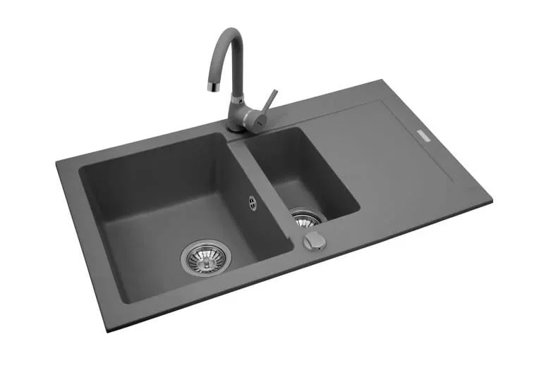 Zlewozmywak granitowy 100x50 cm z szarą baterią Bello 1,5B 1D Pyramis Mido 070089901Bn szary beton
