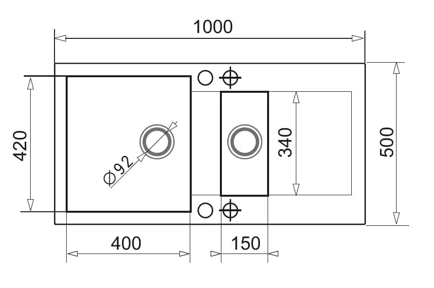 - dodatkowe 2 podwierty technologiczne dla łatwiejszego wiercenia otworów do akcesoriów