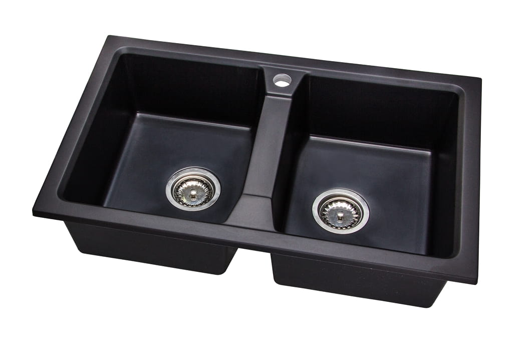 Zlewozmywak granitowy 2-komorowy 77x48 cm Darfor DG018 czarny