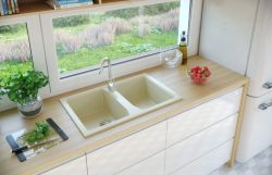 Kolor jaśminowy. Zlewozmywak jest w kolorze jaśminu. Dostępny jest również w innych kolorach: beż, czarny, jasny beż, grafit, czarny nakrapiany, popiel (wybierz w opcjach).