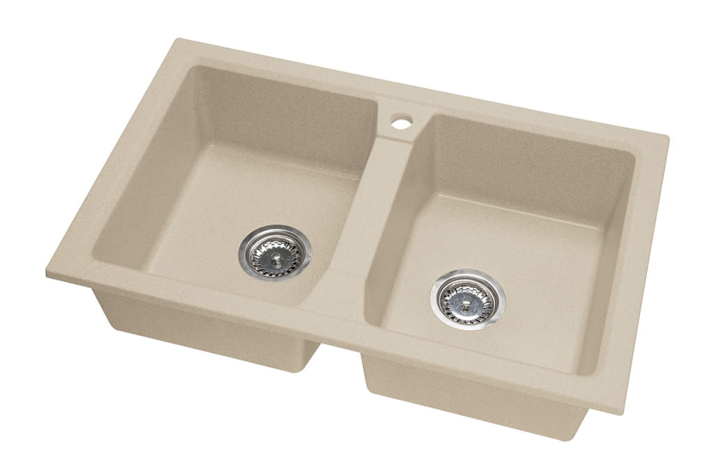 Zlewozmywak granitowy 2-komorowy 77x48 cm Darfor DG018 jasny beż