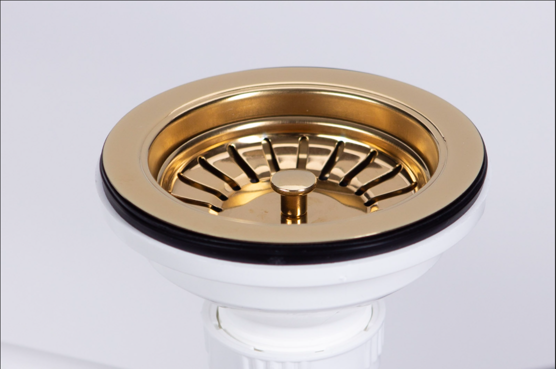 Wyposażenie: syfon przyścienny. W komplecie ze zlewem znajduje się syfon ręczny w kolorze chrom. W opcjach istnieje możliwość wybrania wersji automatycznej oraz jednego z trzech kolorów do wyboru: chrom, czarny, złoty. Przy wyborze wariantu automatycznego niezbędny jest dodatkowy otwór na pokrętło do sterowania sitem.