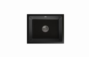 Zlew kuchenny jednokomorowy 56x46 cm Darfor. Zlewozmywak podwieszany wykonany z granitu, o wymiarach 56x46 cm, zapewnia funkcjonalność i komfort użytkowania podczas codziennych prac kuchennych. Jego nowoczesny, minimalistyczny styl harmonizuje z różnymi stylami kuchni, od klasycznych po nowoczesne, w tym industrialne. Eleganckie wykończenie w intensywnej czerni nadaje każdej kuchni nowoczesny i stylowy wygląd.