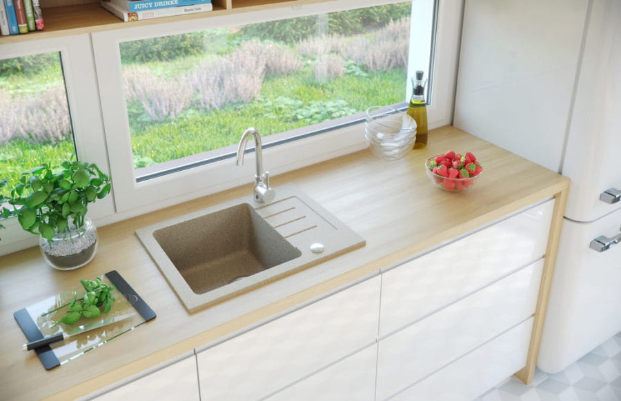 Łatwe, szybkie czyszczenie. Zlew posiada gładką powierzchnię, co ułatwia jego czyszczenie. Odporność na plamy dodatkowo zwiększa komfort utrzymania go w czystości. Nie ma potrzeby stosowania silnych detergentów. Wykorzystany granit ma właściwości antybakteryjne, co sprawia, że jest higieniczny.