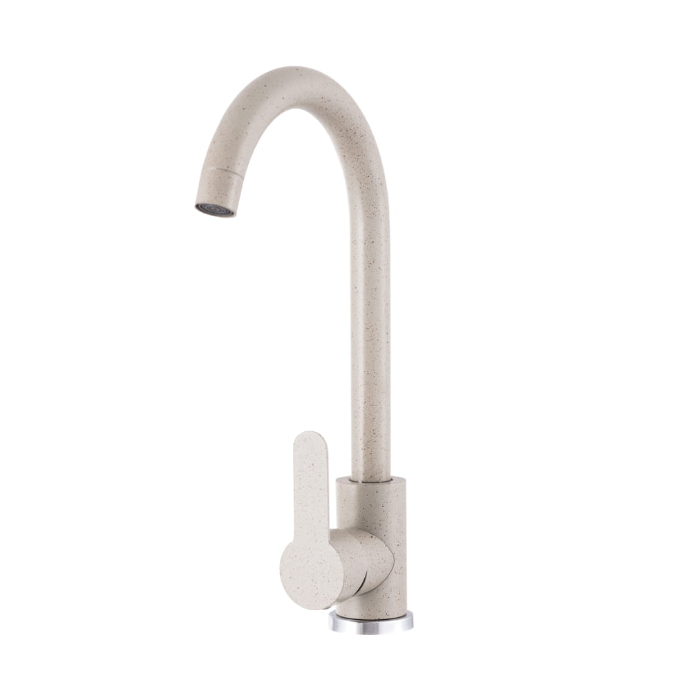 Zlewozmywak granitowy jednokomorowy 58x45 cm z baterią kuchenną Deco Darfor DG014+DECO+SMCH beż
