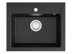 Zlew czarnego koloru. Zlew wykonany w modnym kolorze czarnym. Dostępny jest również w innych kolorach: biały, czarny nakrapiany, beż, jasny beż, grafit, popiel, jaśmin.