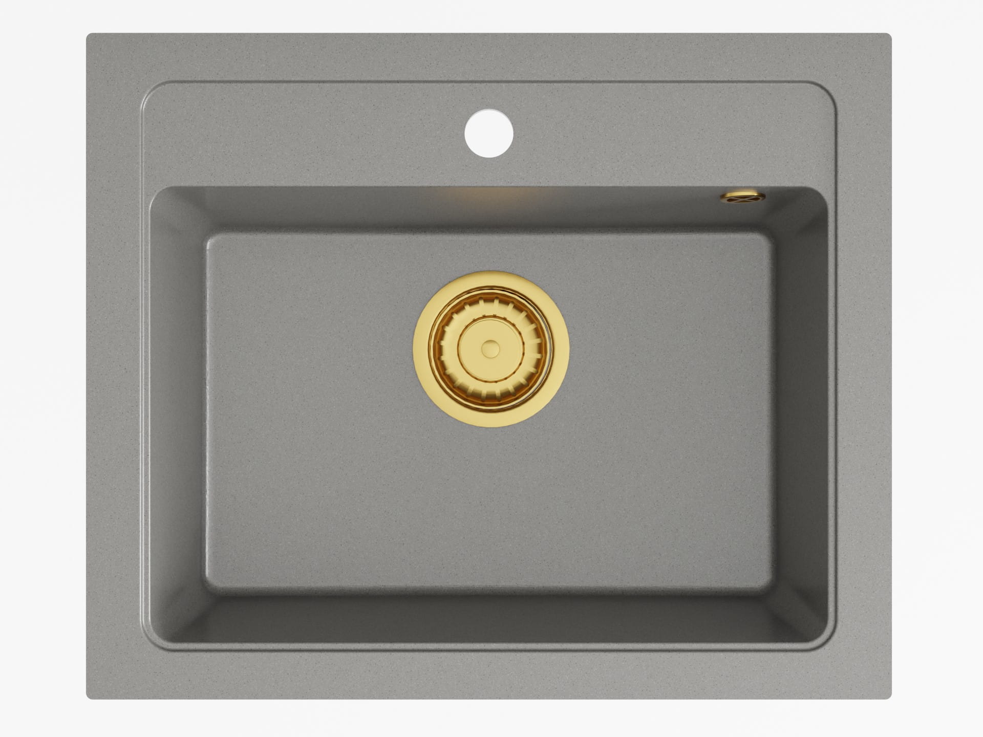 Zlew kuchenny jednokomorowy 58x48 cm Darfor. Zlewozmywak wyprodukowany z wysokiej jakości granitu wyróżnia się prostą, minimalistyczną formą posiadającą jedną dużą komorę, co nadaje mu zarówno estetyczny wygląd, jak i funkcjonalność. Design zlewozmywaka odzwierciedla najnowsze trendy w aranżacji kuchennych wnętrz, co tworzy spójne połączenie pomiędzy stylem i użytecznością. Dodatkowo, delikatny popiel dodaje zlewozmywakowi niepowtarzalnego charakteru, podkreślając nowoczesną estetykę całej kuchni.