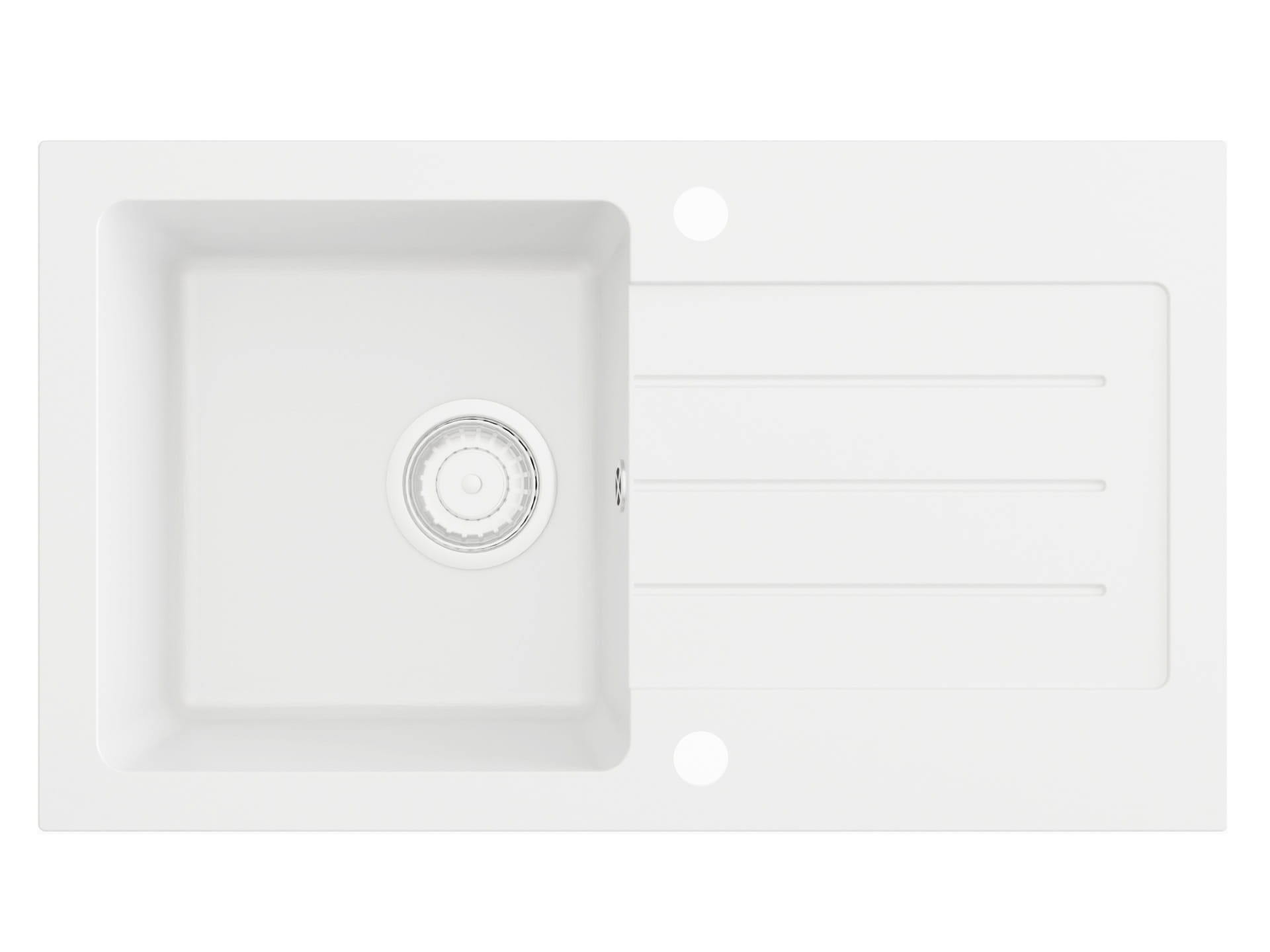 Zlewozmywak z granitu. Kuchenny zlewozmywak składa się w 80% z granitowego kruszywa, co zapewnia mu wyjątkową trwałość oraz odporność na plamy i uszkodzenia. Granit jest idealnym materiałem do kuchni często użytkowanych, gwarantując niezrównaną funkcjonalność i wytrzymałość.
