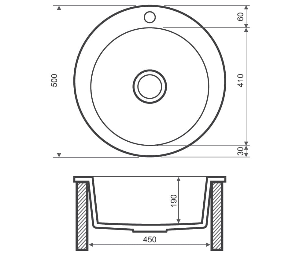 Zlewozmywak granitowy 1-komorowy, okrągły 50 cm Darfor DG003 popiel