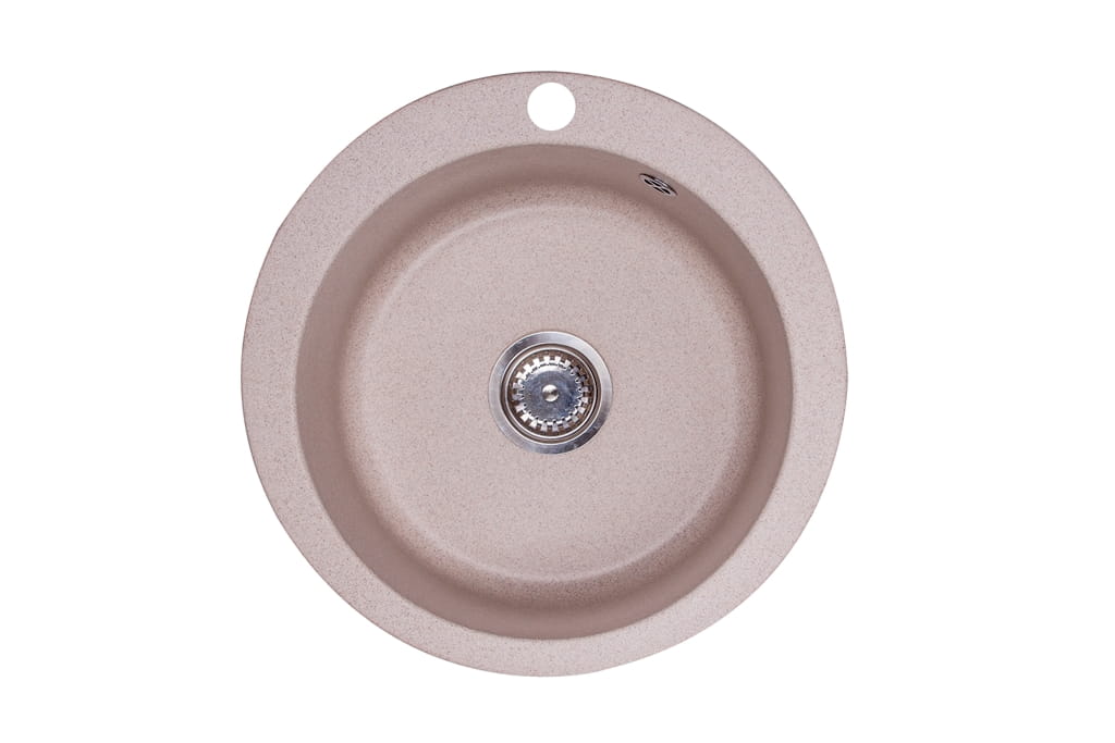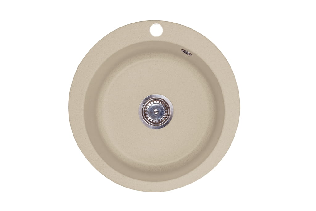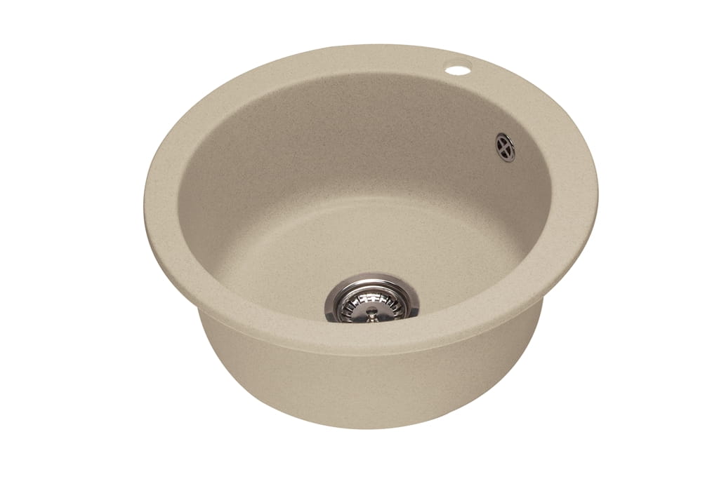 Jasnobeżowy zlewozmywak granitowy 50 cm Darfor. Zlewozmywak kuchenny wykonany z wysokiej jakości granitu oferuje użytkownikowi okrągłą, praktyczną komorę wpuszczaną w blat lub szafkę. Zlewozmywak wyróżnia się zgrabną, okrągłą formą o średnicy 50 cm. Jego nowoczesny design, oparty na prostocie i eleganckim, jasnobeżowym odcieniu, doskonale komponuje się z różnorodnymi, kuchennymi aranżacjami.