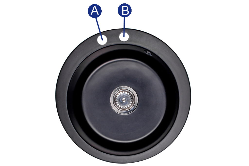 - zlew posiada otwór na baterię B. Na życzenie możliwość wykonania dodatkowego otworu A - napisz w uwagach.