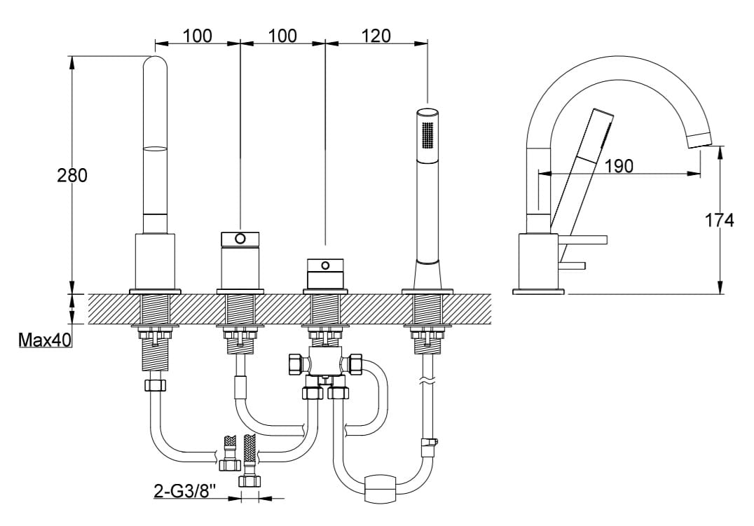 KohlmanBateria wannowa stojąca 3-otworowa ze słuchawką prysznicową czarny mat Kohlman Axel QB241AB